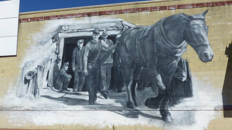 42/15724 Wellington Dam barrage avec une fresque géante. Nous prenons la petite route touristique qui longe la rivière Collie, très vert, on se croirait en France.