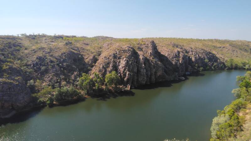 Nous arrivons à Katherine petite ville. Nous y restons 3 nuits dans un caravane park, sous tente. 83 euros les trois nuits avec électricité. Correct. Balade sous 35 degrés, très peu d'ombre. 8km environ. Très belles vues sur le fleuve Katherine.