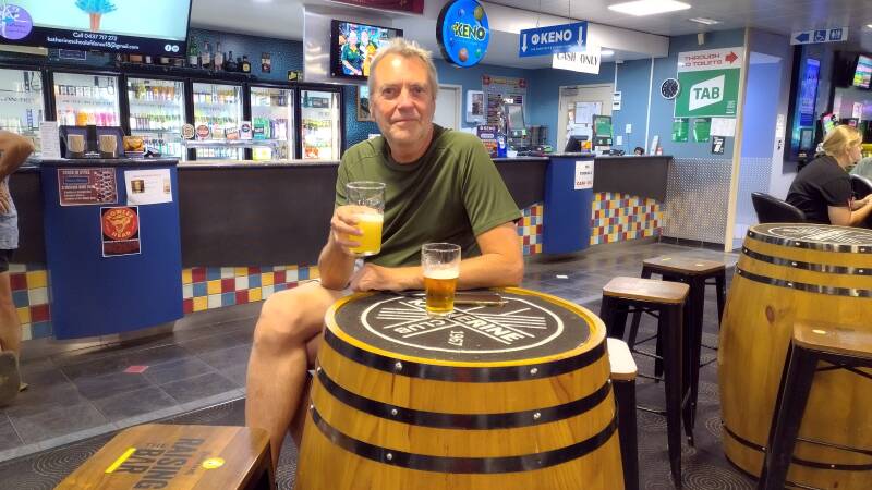 Bon petit repas au Katherine Clubs, bière er repas pour 62 dollars, 37 euros.