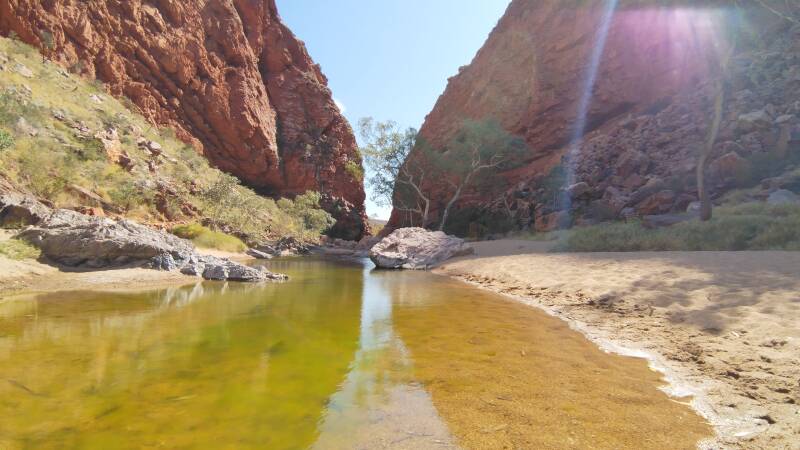 Le parc, est desservi par la route bitumée Namatjira, de nombreuses gorges où l’on trouve des trous d’eau permanent. De belles balades.