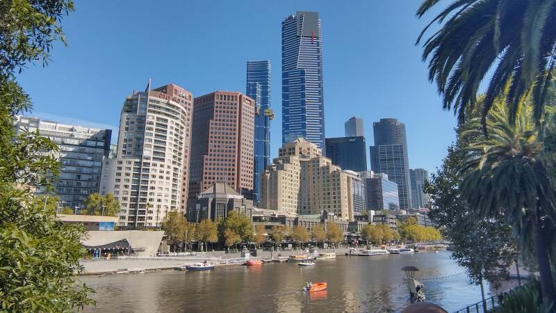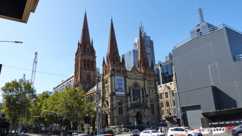 Nous laissons la voiture à Point Cook et partons en bus et train pour le centre ville. Pour se déplacer il suffit d’enregistrer sur le wallet de son smartphone la carte mycki et la créditer de 10 dollars. Ensuite valider à la montée et à la descente. En semaine la journée coute 10,60 dollars et dans notre cas le dimanche 7,20 dollars, autant de bus, tram et train que vous voulez. Le centre ville, les trams sont gratuits. Il y avait des travaux sur les voies, il nous a fallu 1h45 pour arriver à Melbourne centrale. La ville est très animée, ce qui nous à le plus surpris, c’est la population, des asiatiques et indiens partout, on se croyait à Singapour. Sinon belle ville qui ressemble à toutes celles que l’on a vues, avec ces beaux buildings au bord de l’eau et ses vieux monuments entourés de constructions modernes.