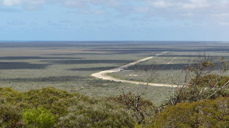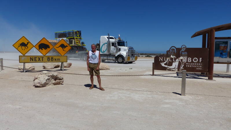 La frontière officielle du South Australia est à BorderVillage. Les changements d'heure sont compliqués, on augmente de 1h45. On a donc officiellement 2h30 de plus qu'Esperance, nous arriverons tard à Ceduna. Les Australiens aiment se compliquer la vie, le contrôle sanitaire n’est pas au même endroit selon que vous venez ou que vous allez au Western Australia. Du South Australia au Western Australia le contrôle est à Border Village, du Western Australia au South Australia, notre cas, c’est quelques kilomètres avant Ceduna.