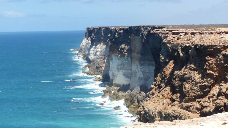 Sur la route nous faisons deux haltes au dessus de magnifiques falaises. Great Austrian Bight ou je filme des dauphins.