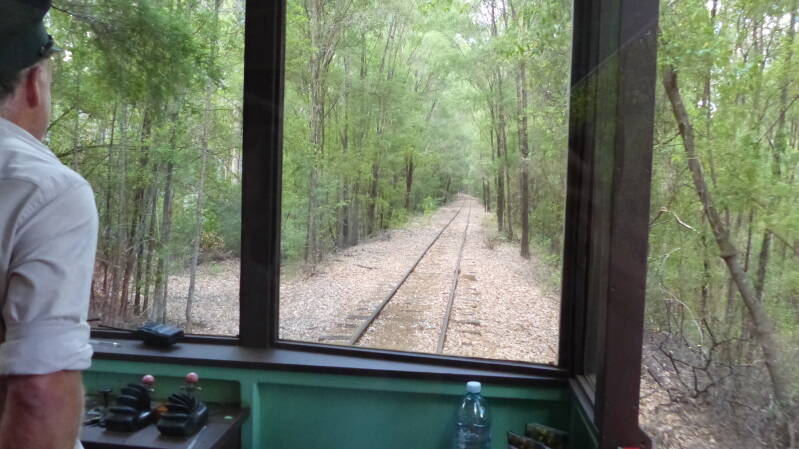 Balade en tramway. Utilise les anciennes rails des scieries. 1h30 aller retour dans la forêt sur des ponts en bois, jusqu'à des cascades sympa au fond de la forêt. 28 dollars par personne, 17 euros.