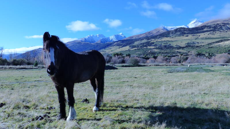 Nous prenons la route de Glenorchy, lieu très connu des cinéphiles où ont été tournées les scènes mémorables du Seigneur des Anneaux, X-Men, Wolverine et Mission Impossible. Nous nous arrêtons à Twelve mile Delta où a été tourné la scène du repas de Frodon et l'attaque des Oliphants. Les paysages sont magnifiques, nous longeons le lac Wakapitu. Temps ensoleillé. Nous mangeons sur le pouce dans un petit magasin, Général store, un bout de pizza, une tarte au légumes et un café, 30 dollars. Nous poursuivons jusqu'au terminus de la route goudronnée au mythique et très sauvage Isengard lieu où fut tourné les 2 tours du SeigneurdesAnneaux, on imagine bien le lieu et la tour du sorcier Saroumane.